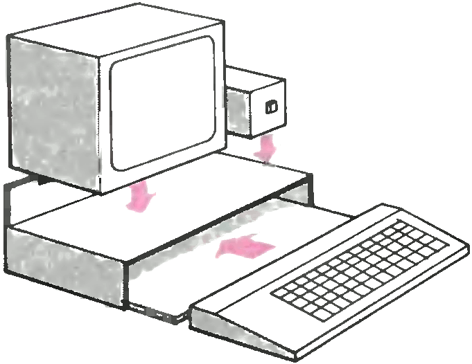 Крепление ЭВМ пользователя. С целью повышения электробезопасности и улучшения внешнего вида рабочего места пользователя разработана конструкция, позволяющая объединить БК-0010, блок питания и телевизор в один узел.