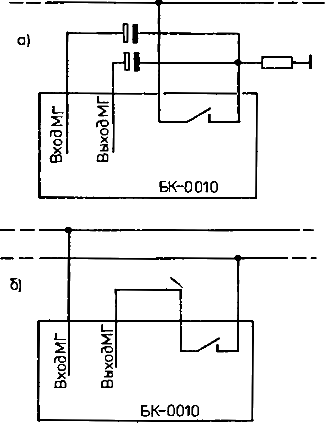 Магнитофонный канал. О возможности связи отдельных БК-0010 по магнитофонному каналу уже сообщалось. Автором более детально исследованы возможности различных вариантов создания подобного канала. Наиболее целесообразными являются следующие: с помощью одного экранированного кабеля; с помощью двух экранированных кабелей.