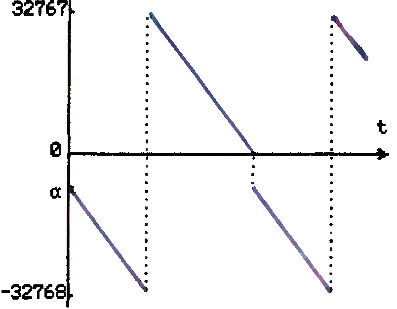 В случае, когда а=32767 (&H7FFF), полный период работы счётчика по точным измерениям[1] равен 89,657 с, откуда следует, что коэффициент пересчёта показаний счётчика в секунды К = 32767 / 89,657 = 365,47.