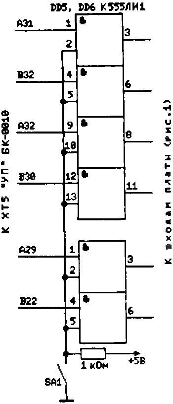 Впрочем, от недостатков она не свободна - занимает порт УП БК, так что программы, работающие, например, с принтером, могут отображаться только в стандартных цветах. Джойстик и другие устройства можно подключить к этой приставке, если они используются не более шести контактов BD (байта данных - контакты А16, А13, В12, B10, В5, В7, В6, А7 УП).