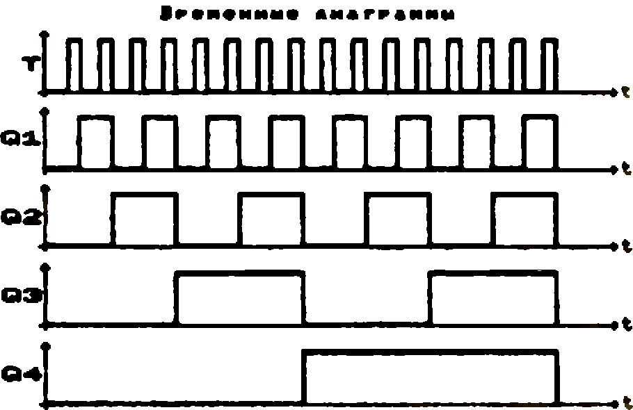 После заполнения таблицы истинности на экране строится временная диаграмма с требуемым коэффициентом пересчёта. Пример - на рис. 3.