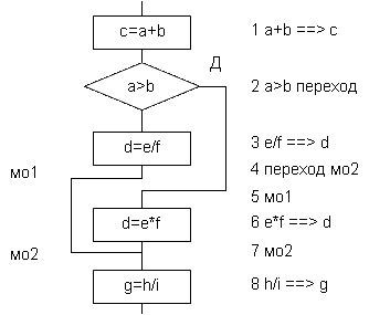 Предлагаемый метод появился в результате длительной работы с языком ЯМБ компьютера «Искра-1256» и служит дополнением к методу блок-схем. Он позволяет однозначно перейти от блок-схемы к тексту программы и может быть легко модернизирован с учётом особенностей конкретного неструктурного языка программирования. Наибольший эффект метод даёт при применении на самой ранней стадии разработки программы. (Стандартная методика составления блок-схем здесь не рассматривается, так как предполагается, что читатель с нею уже знаком. Кроме того, описание начальных этапов разработки программы имеется в литературе. Отметим лишь, что надо постараться получить как можно более простую и короткую блок-схему, тогда и текст программы будет более оптимален.)