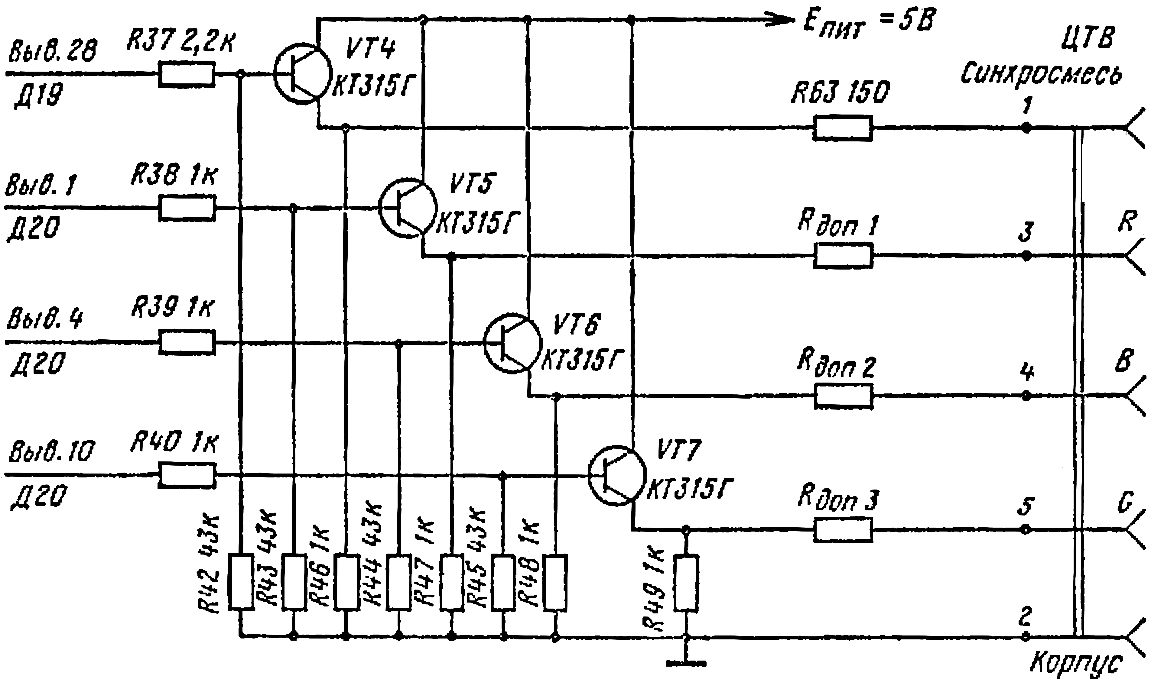 Рис. 2. Схема выходных каскадов ПЭВМ (разъём ЦТВ)