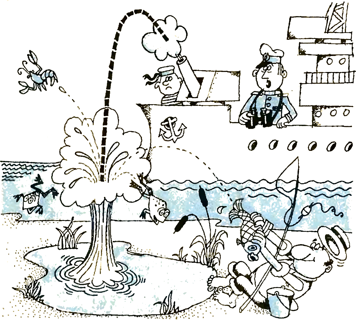 определения площади пруда - стрельба в него из пушки, а художник этот процесс