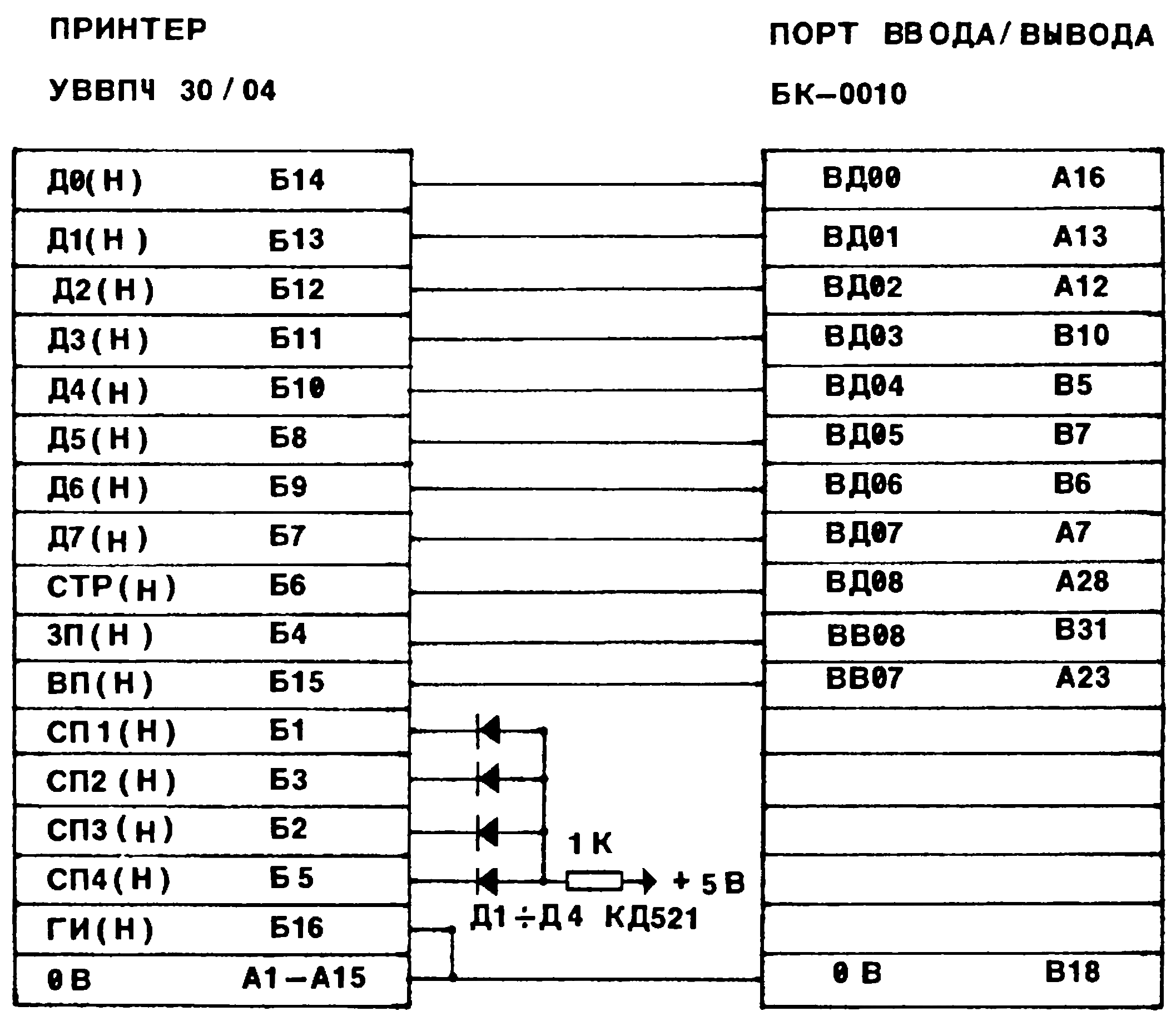 Схема кабеля печати БК-0010Ш с Бейсиком