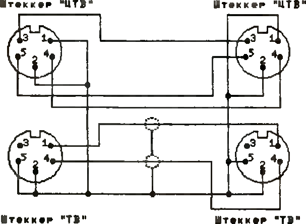 Разъёмы ТВ, ЦТВ очень удобно установить на передней панели телевизора вместо установленных там двух разъёмов, предназначенных для подключения телефонов и магнитофона. В результате такой переделки дизайн телевизора останется неизменным. Поскольку для подключения магнитофона в телевизоре использована розетка типа СГ-5, её можно не снимать, а достаточно просто перепаять в соответствии с рис. 1.