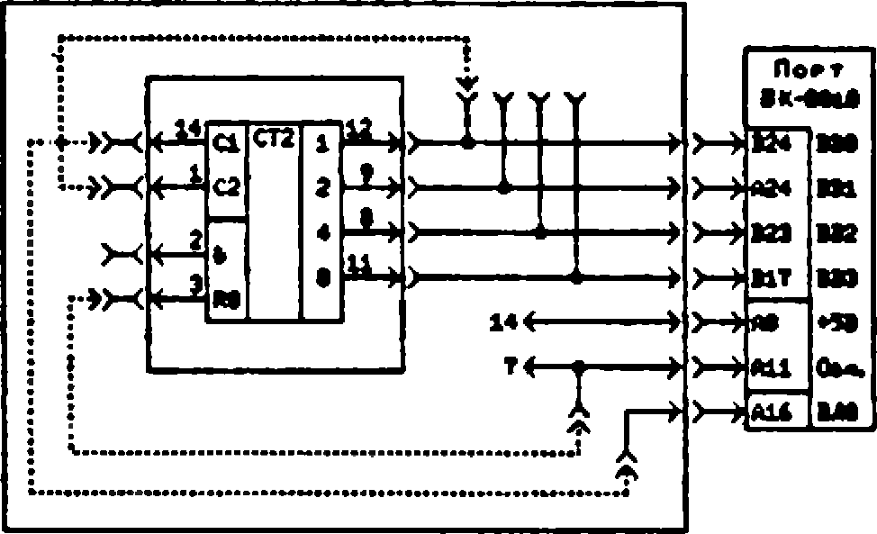 Освоив КУВТ-86, мы нашли иное решение этой задачи. Поясним на примере исследования ИМС счётчиков-делителей К155ИЕ2, ИЕ4, ИЕ5. Выполняется макет с коммутационными гнёздами и набором шаблонов, на которых изображены условные графические обозначения указанных ИМС (принципиальная схема - рис. 1).