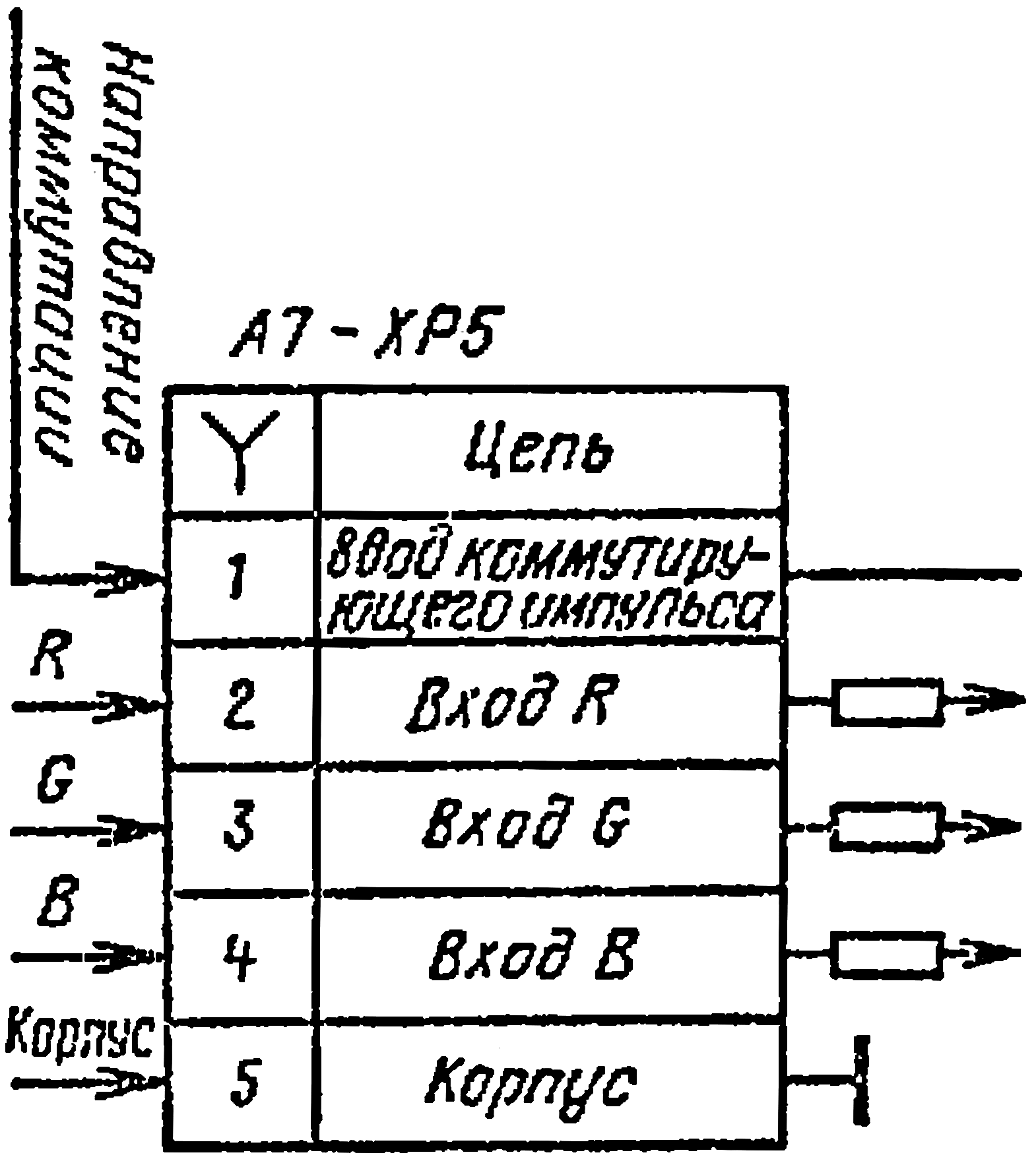 Рис. 6. Схема ввода сигналов R, G, В в блок цвета, имеющий специальные входы.