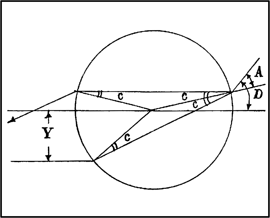 Если прицельное расстояние - Y, то угол падения A=arcsin У, а угол