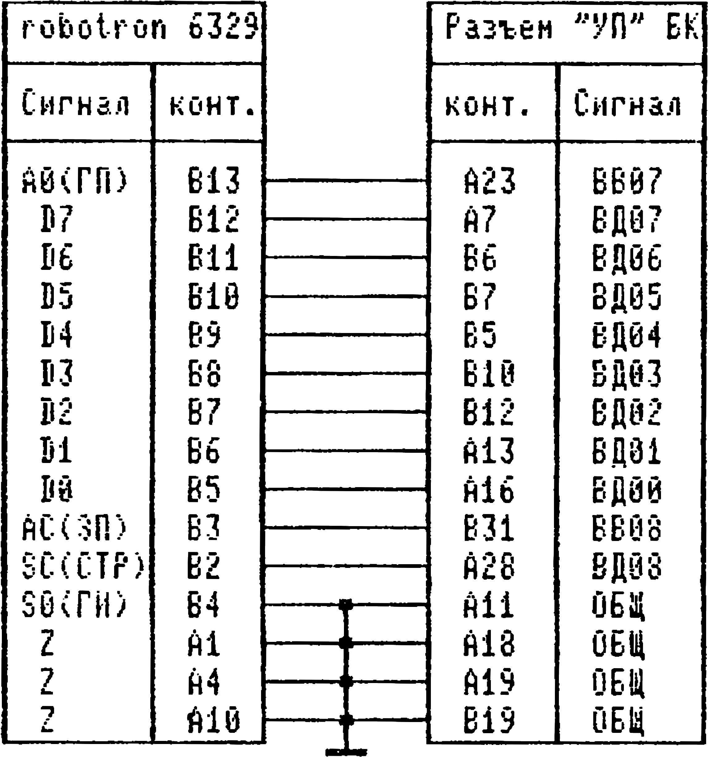Но кроме хороших встроенных средств, для того, чтобы можно было работать на БК с текстами, нужна ещё и специальная программа. Обычно это текстовый экранный редактор (ТЭР). ТЭР предназначен для создания, редактирования, дополнения текста, хранения текстов на магнитной ленте и для распечатки их на принтере. Кроме ТЭР используются сервисные программы, позволяющие переводить текст из формата в формат, просматривать его на экране, распечатывать на принтере. К сожалению, из-за того, что все существующее для БК программное обеспечение создаётся любителями и отсутствуют какие-либо стандарты, возникают проблемы совместимости файлов разных ТЭР, кроме того, иногда используются схемы подключения печатающих устройств, отличающиеся от стандарта. Схема стандартного подключения к БК-0010 принтера "robotron СМ 6329" с интерфейсом IFSP приведена на рисунке. Другие принтеры с параллельным интерфейсом подключаются аналогично.