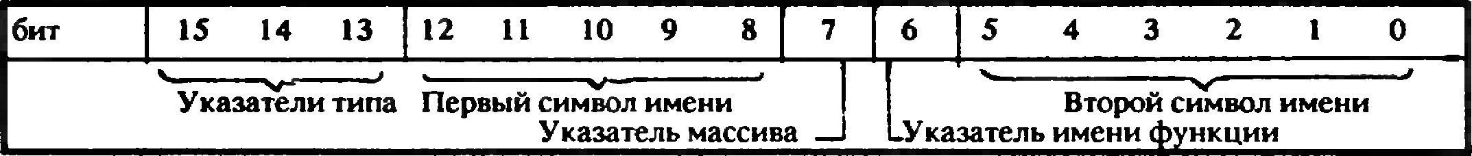 Здесь А% - фиктивная переменная, X1% и Y1% - константы, переменные или выражения (обязательно целые), задающие левый верхний угол прямоугольного поля для фрагмента, Х2%,Y2% - аналогично - координируют правый нижний угол. I% - индекс, указывающий тип операции; если это 0% - выполняется сохранение изображения, в противном случае - его восстановление. Для восстановления запоминавшегося изображения значения X1% и Y1% могут быть другими (чем при запоминании), но разности Х2%-Х1% и Y2%-Y1% должны сохранить свою величину (правда, вторая разность может быть меньше, чем при запоминании). Записанное выражение синтаксически корректно, логические операции типа - безопасны в том отношении, что не вызывают переполнения при любых значениях операндов, а вложенные скобки заставляют параметры подряд накапливаться в стеке. После входа в машинную подпрограмму, если указатель стека в регистре 6 имеет значение к, вид стека такой: